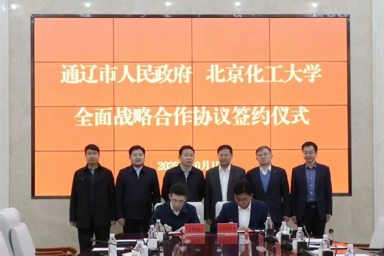On October 15, the Tongliao Municipal People's Government and Beijing University of Chemical Technology held a symposium and signing ceremony for a strategic cooperation framework agreement. Tan Tianwei, President of Beijing University of Chemical Technology and Academician of the Chinese Academy of Engineering, and Qi Dalengtai, Deputy Secretary of the Municipal Party Committee and Mayor, attended and witnessed the signing. Chen Yiming, Vice Mayor of the Municipal Government, presided over the meeting.