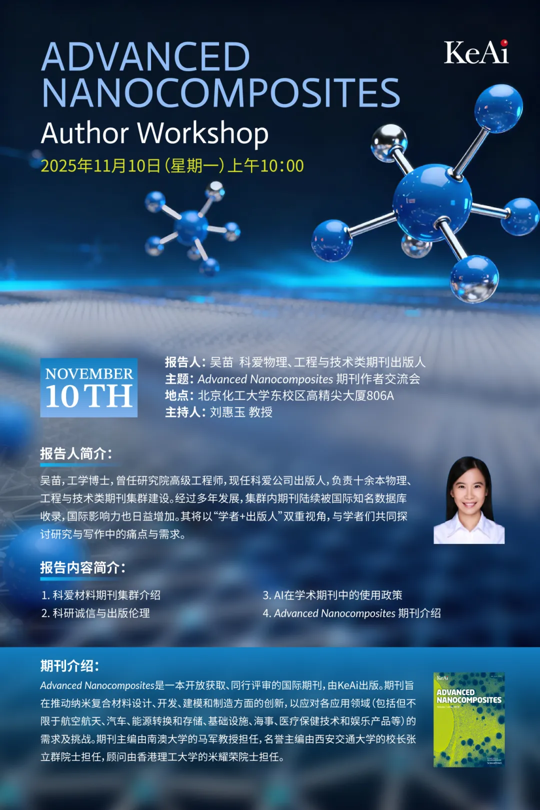 The Advanced Nanocomposites Author Exchange Meeting will be held on November 10, 2025, at the East Campus of Beijing University of Chemical Technology. Authors are warmly invited to participate!
